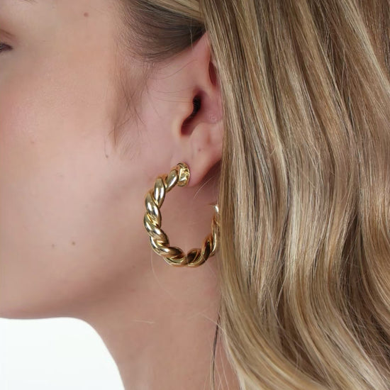 The Bold Bossa Nova Hoops is a bold, fashion-forward staple. These eye-catching 40mm hoops feature a striking 8mm width and a unique twisted design that’s guaranteed to turn heads. Finished in polished 18k gold plating, they reflect light beautifully and bring a touch of Brazilian-inspired glamour to any look. Lightweight yet impactful, they’re perfect for customers seeking standout accessories.