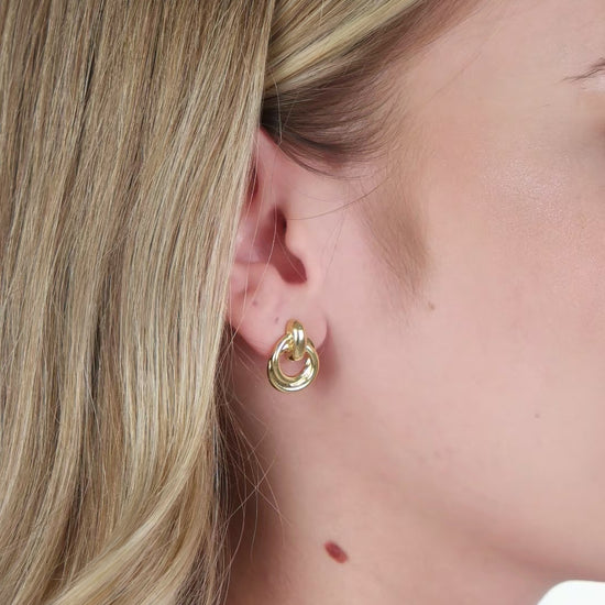Elevate your everyday style with the refined charm of our Double Knot Earrings. Featuring an intricate knot design, these earrings exude modern elegance and symbolic sophistication. Plated in a lustrous gold, they offer a timeless allure that complements any outfit. Lightweight and expertly crafted for all-day comfort, these versatile earrings are the perfect accessory for everything from casual outings to special occasions, effortlessly enhancing your look with understated grace.