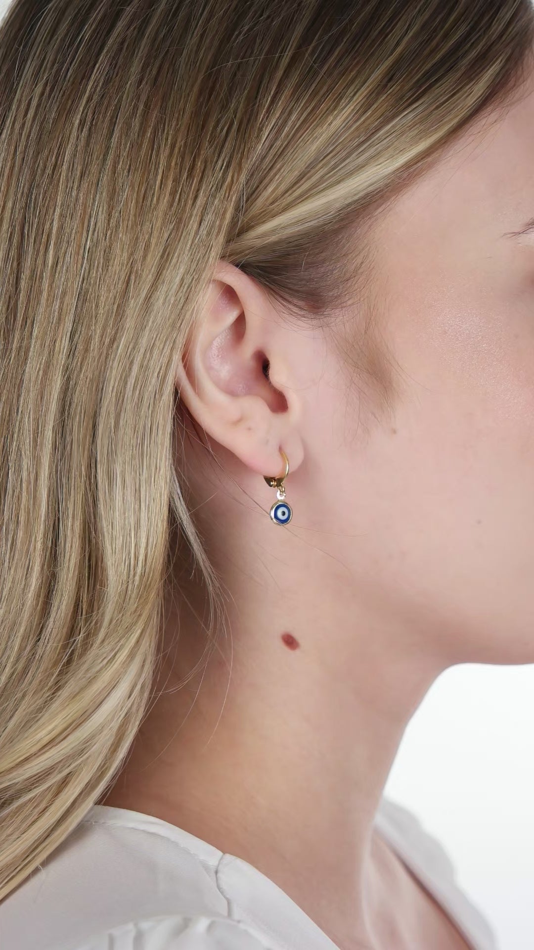 Protect your style with our Greek Eye Charm Huggies, a perfect blend of symbolism and bohemian chic. Featuring a sleek huggie hoop adorned with a delicate blue Greek eye charm, these earrings are believed to ward off negative energy while inviting good fortune. Crafted with care from high-quality materials, they offer both durability and timeless style. Whether worn alone or stacked, these earrings are a meaningful and fashionable addition to any jewelry collection.