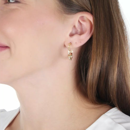 These 25mm hoops pair a bold link chain design with the eye-catching shimmer of zirconias. Finished in 18k gold plating, they strike the perfect balance between trendy and timeless. A versatile piece your customers can dress up or down.