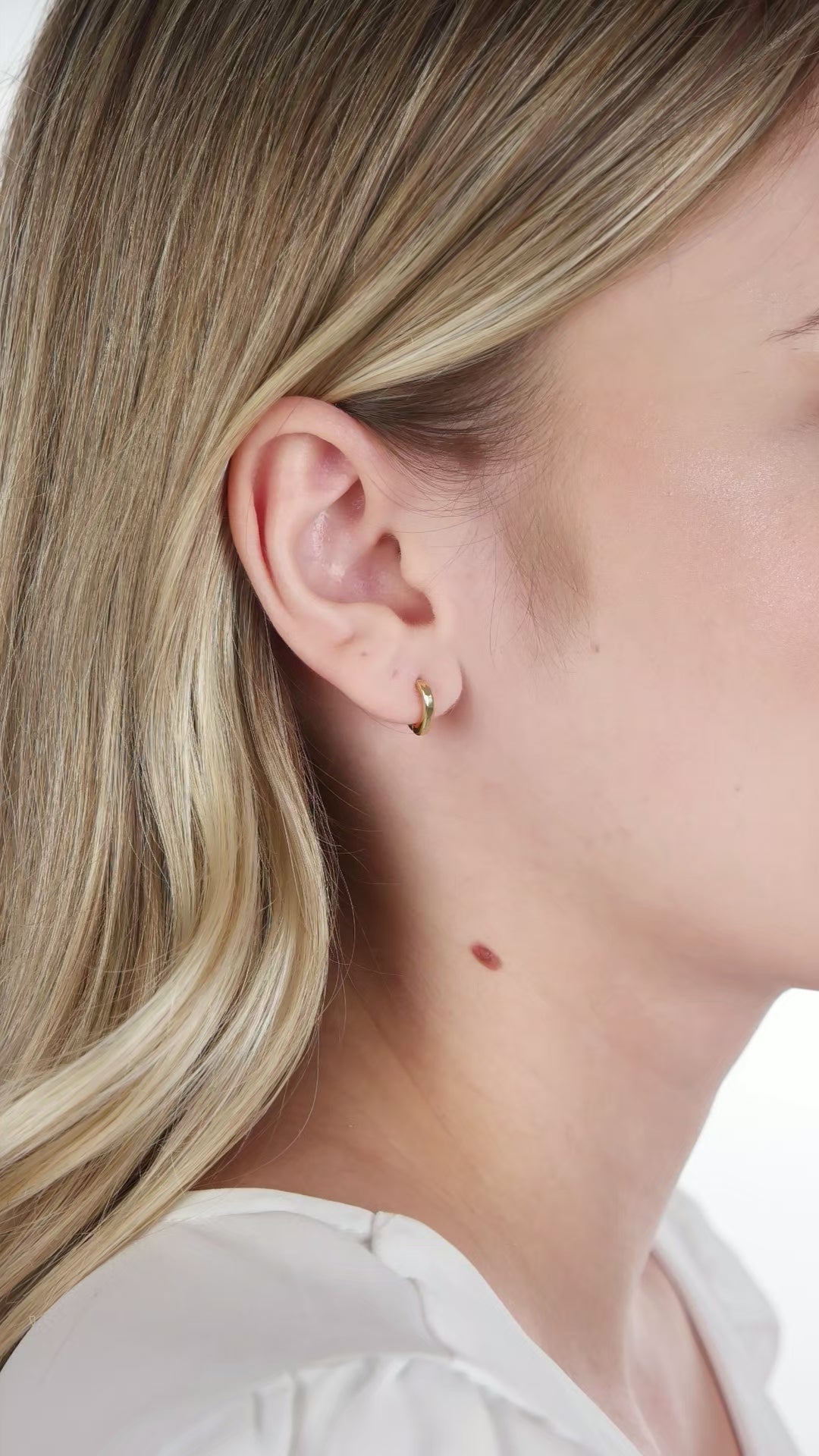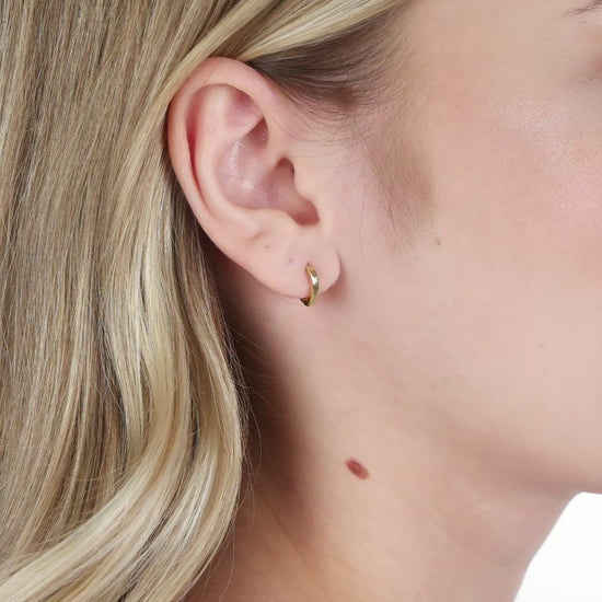 - 14mm mini huggie design with a sleek pointed silhouette for a contemporary touch