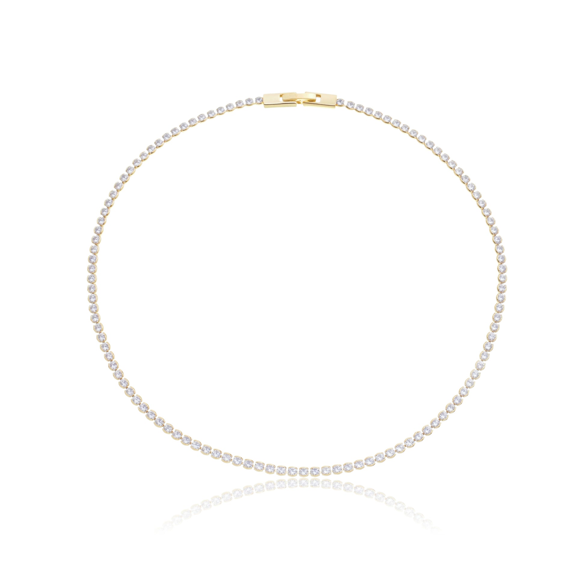 Radiate elegance with the Round Radiance Tennis Choker Necklace. This captivating piece features a row of sparkling round-cut zirconia stones, creating a dazzling display of light. Embrace the brilliance of this timeless design, a true testament to Bossaglam's commitment to exceptional craftsmanship.