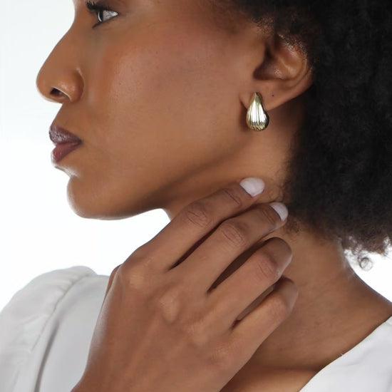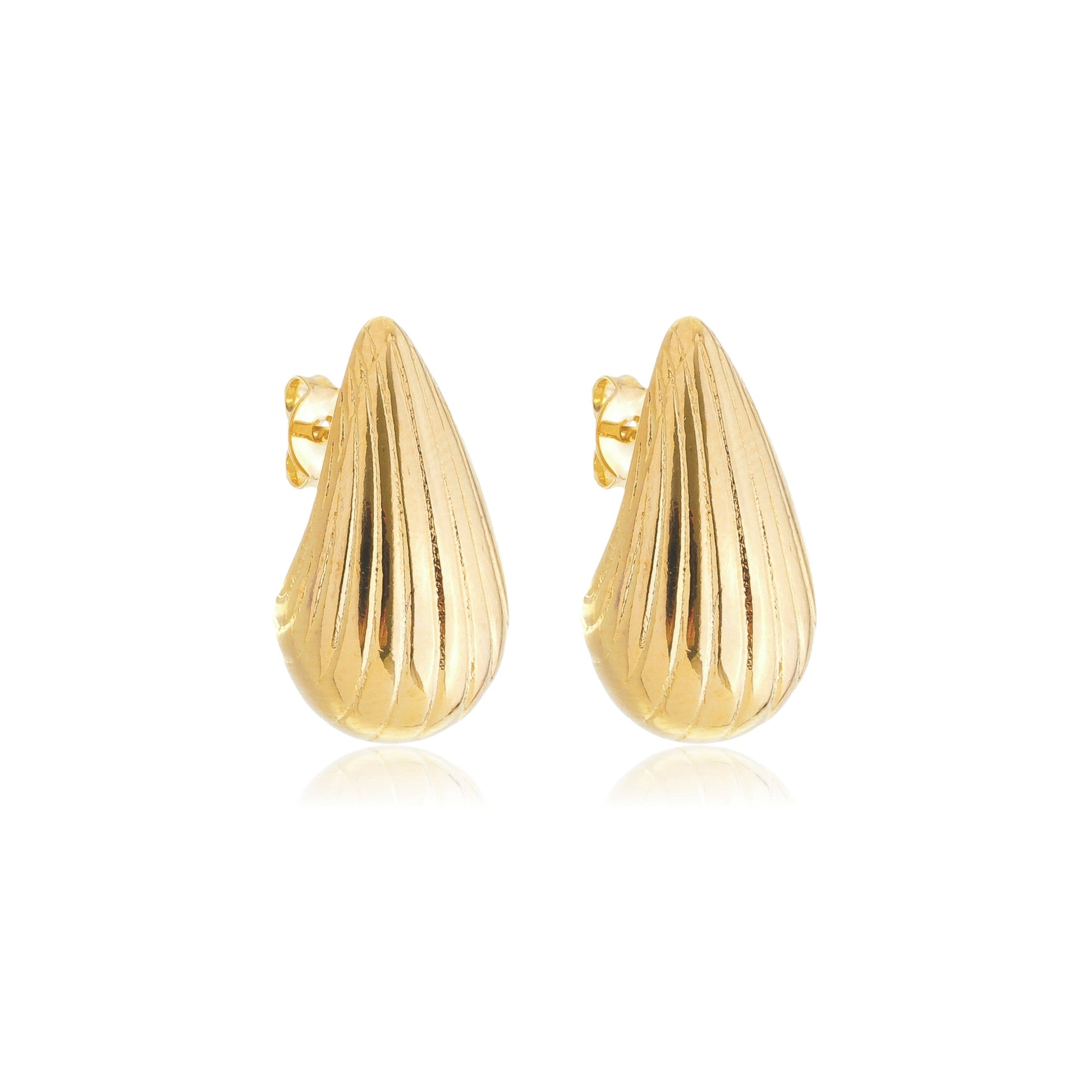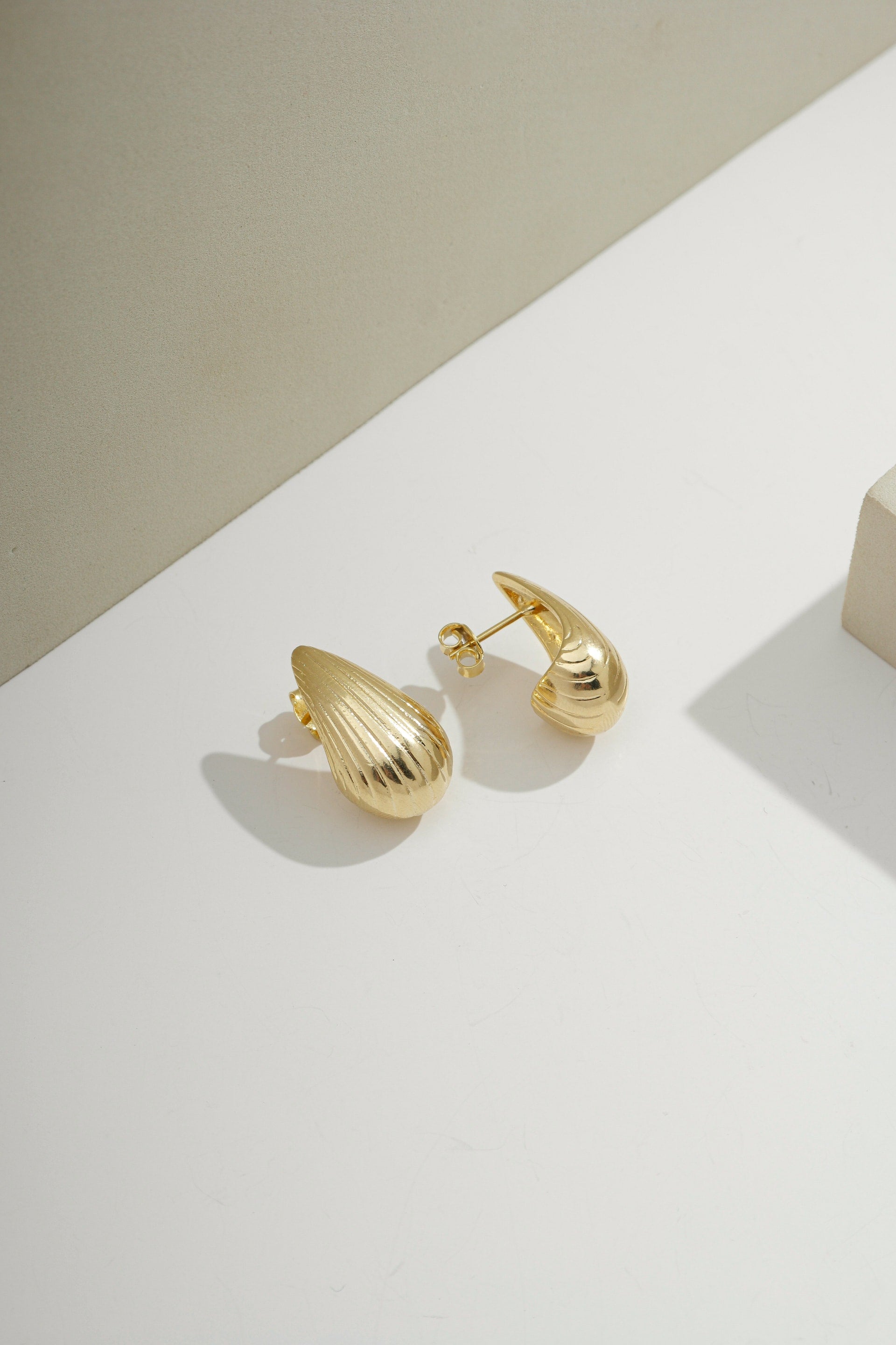 Bring a touch of coastal elegance to your style with our Seashell Teardrop Earrings. Featuring a graceful teardrop silhouette and delicate vertical grooves inspired by the natural texture of seashells, these earrings are a perfect blend of sophistication and charm. Plated in high-quality gold, their smooth, polished surface adds a radiant glow to any outfit. Whether you're drawn to timeless elegance or beach-inspired design, these earrings are a must-have for your jewelry collection.