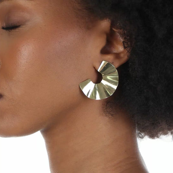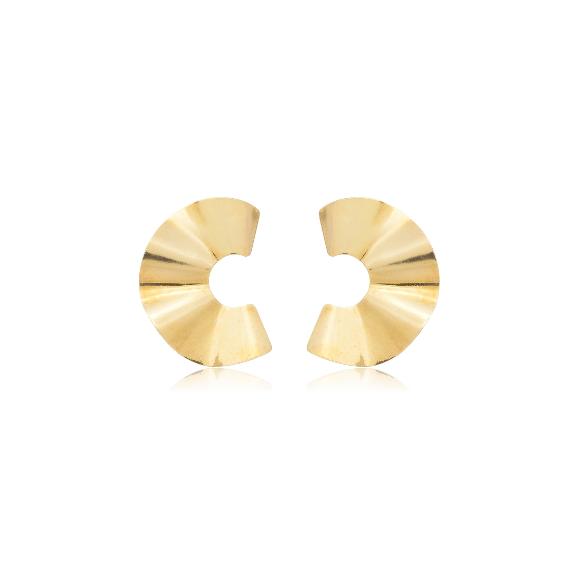 Capture the essence of a golden sunrise with the Sunray Studs. These elegant earrings feature a unique, wave-like design that evokes the shimmering rays of the sun. The warm, golden hue adds a touch of sophistication, making them the perfect accessory to elevate any look.